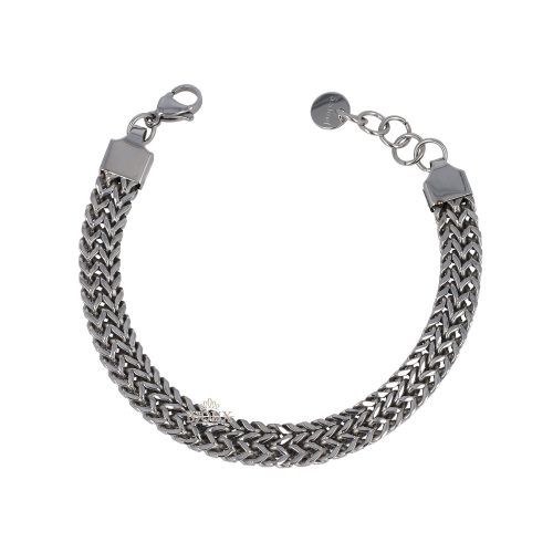 Bracciale da uomo in acciaio inossidabile rodiato a catena. Con extension per regolarne la dimensione. Con astuccio regalo 21×5 blu