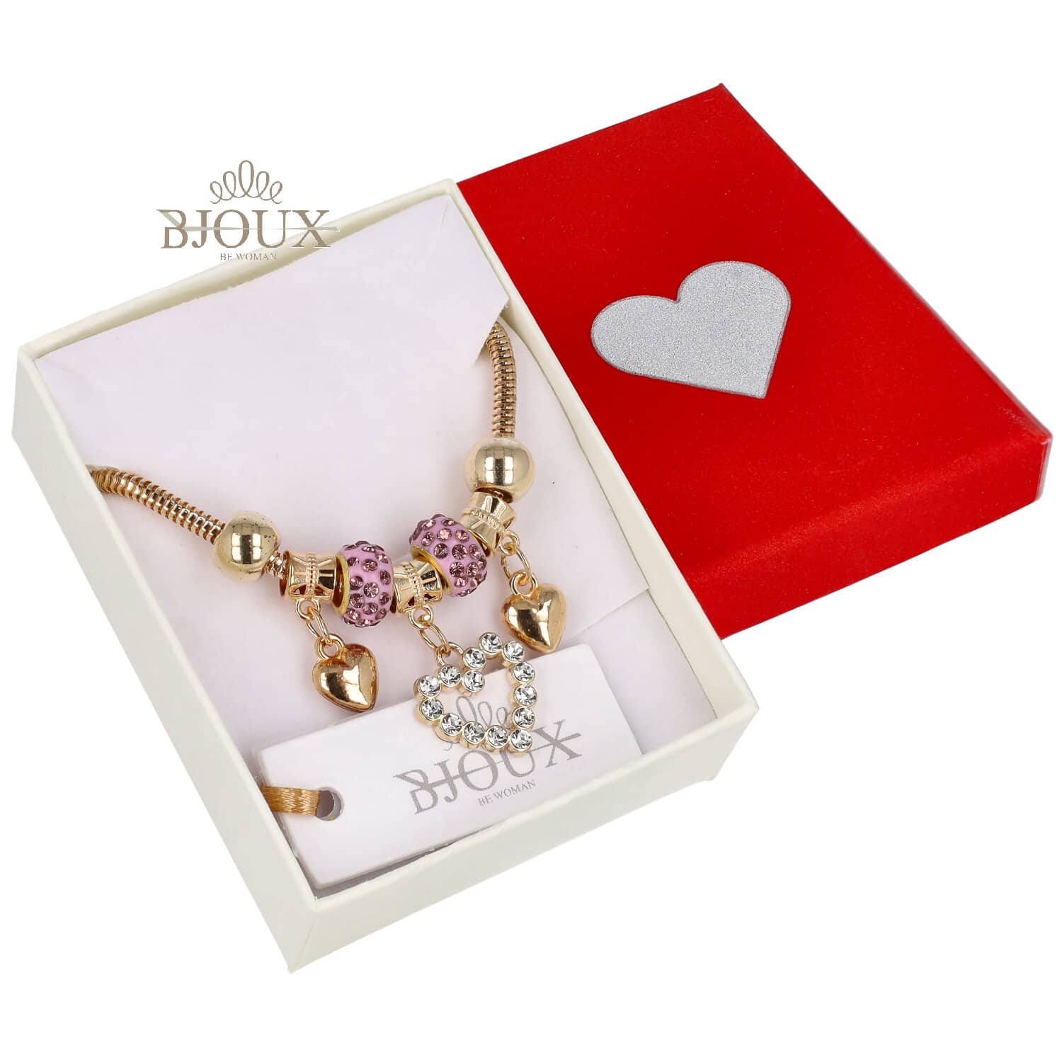 Bracciale dorato beads rosa e ...