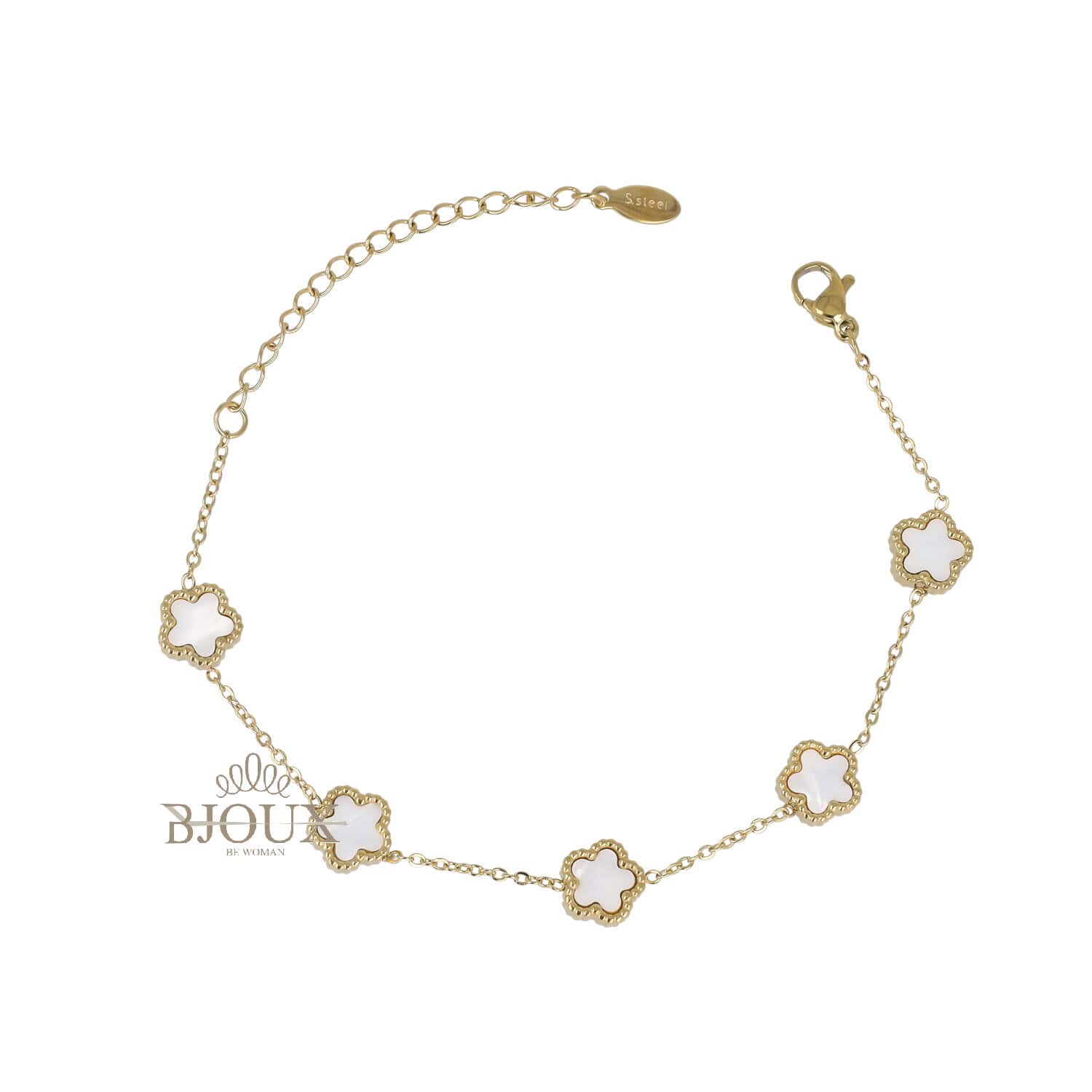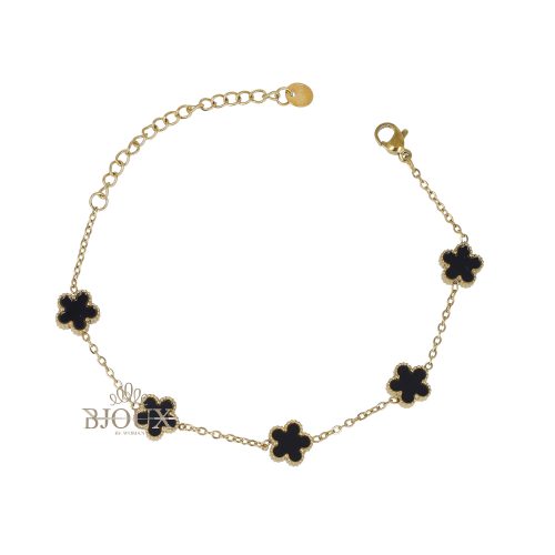 Bracciale catenina in acciaio inossidabile, 17+5 cm estensione. Bracciale con 5 fiorellini da 0,90 cm con interno colorato