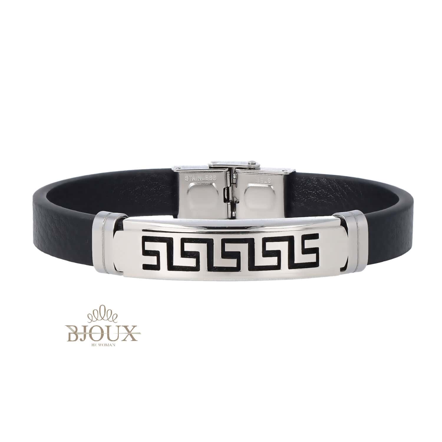 Bracciale di bigiotteria in ecopelleย da uomo. Bracciale con chiusura rodiata in acciaio con centrale targa