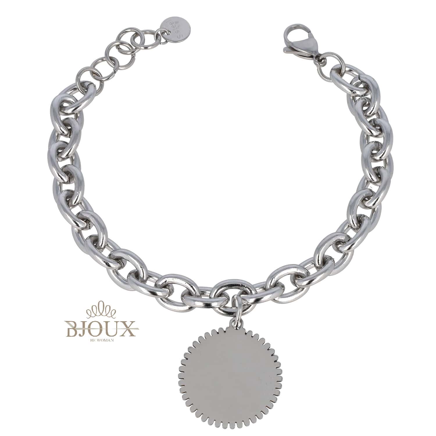 Bracciale bigiotteria da donna in acciaio inossidabile catena con pendente medaglia. In due colori