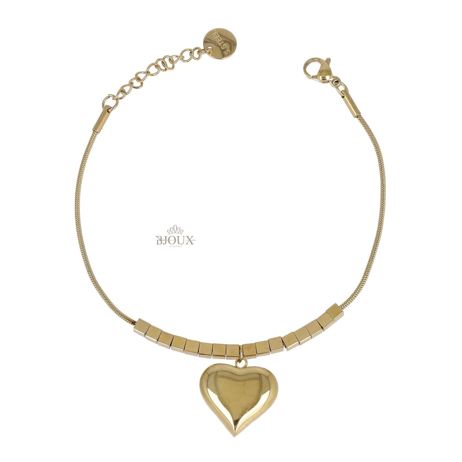 Bracciale di bigiotteria in acciaio inossidabile da donna, con cubetti e pendente cuore bombato