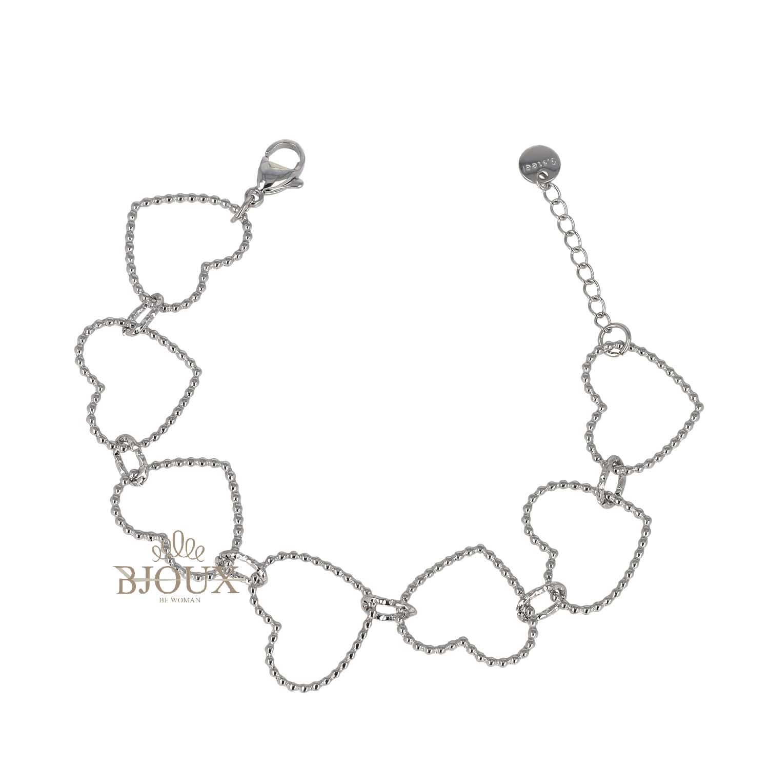 Bracciale in acciaio inox con maglie a forma di cuore vuoto, un design moderno e romantico. Disponibile in oro e argento.
