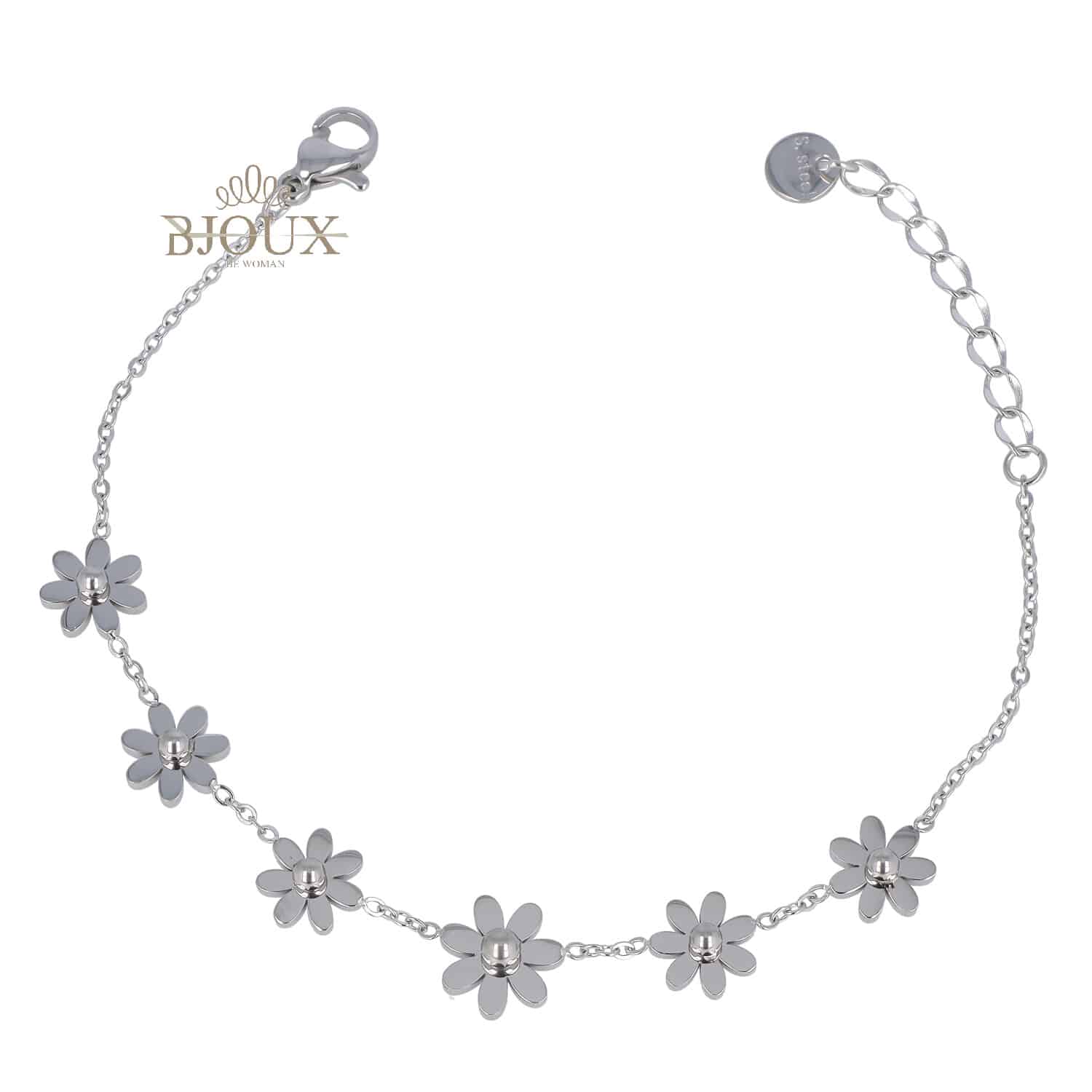 Bracciale in acciaio inossidabile catena con misura regolabile. Con margherite piccole. Disponibile in tre colorazioni.
