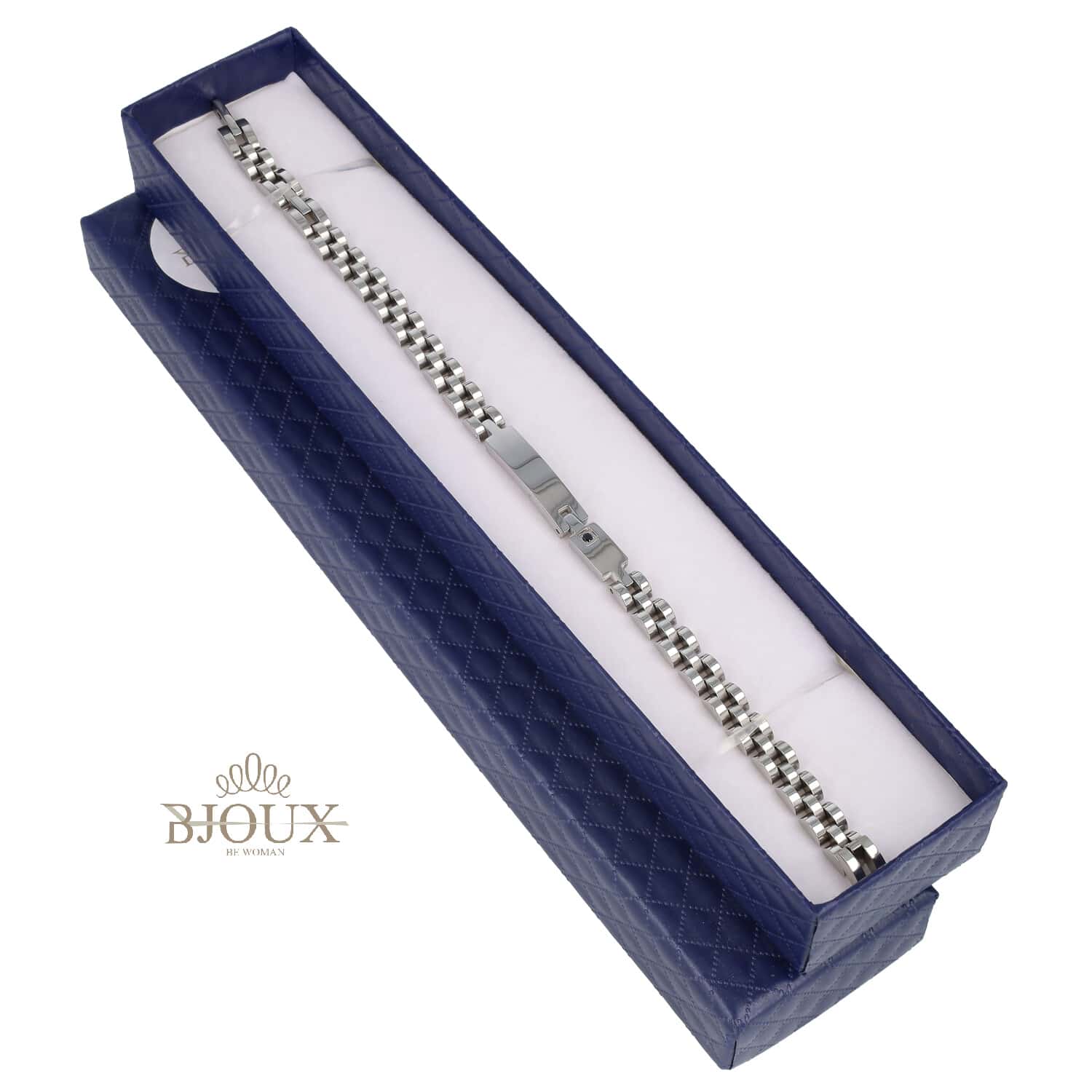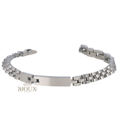 Bracciale in acciaio inossidabile modello catena a maglia con targa a due elementi con punto luce. Completo di astuccio 21×4,5×2,5 cm