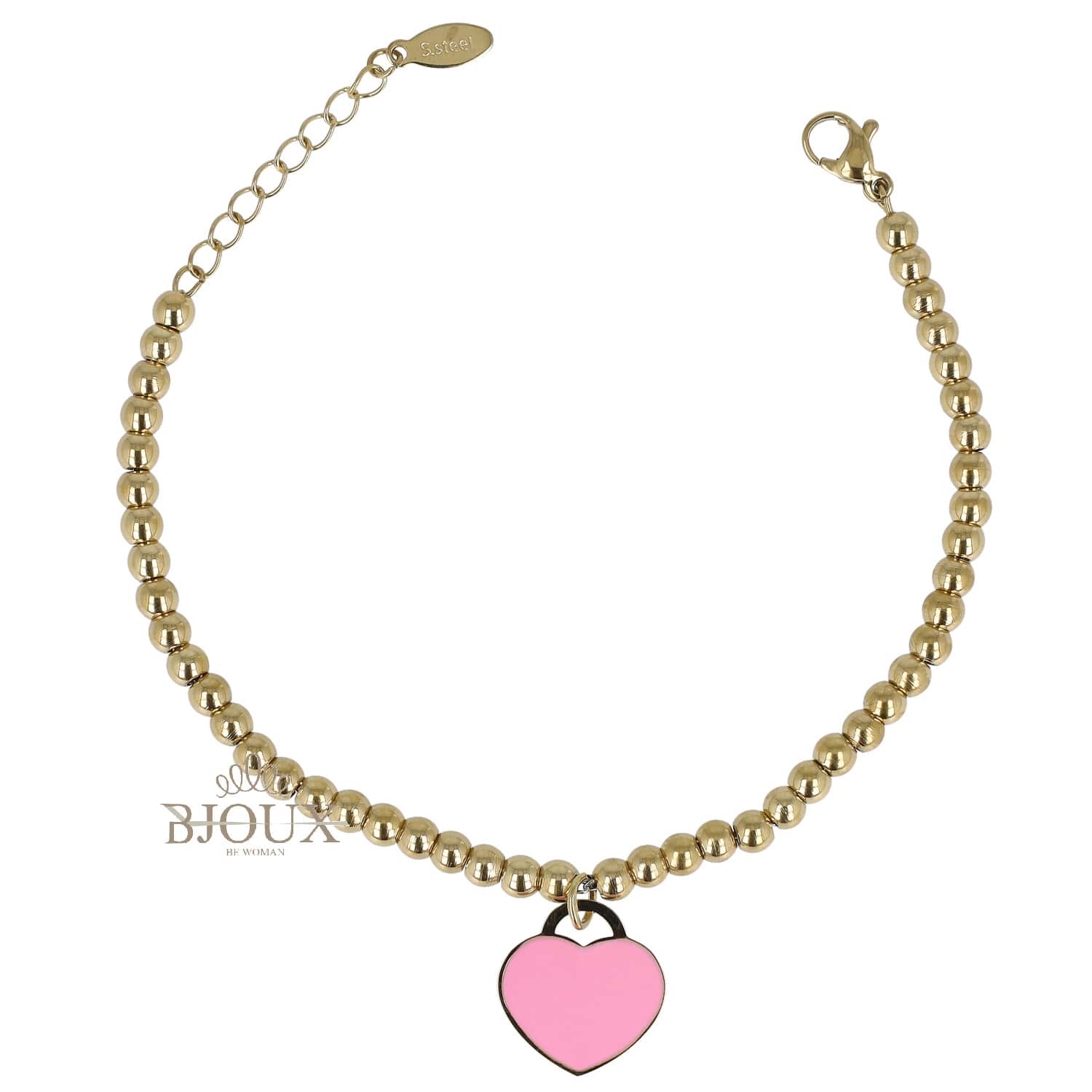 Bracciale da donna in acciaio inossidabile a pallini color oro con pendente cuore smaltato e colorato