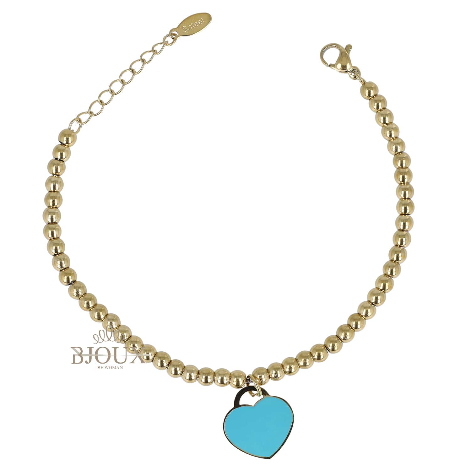 Bracciale da donna in acciaio inossidabile a pallini color oro con pendente cuore smaltato e colorato