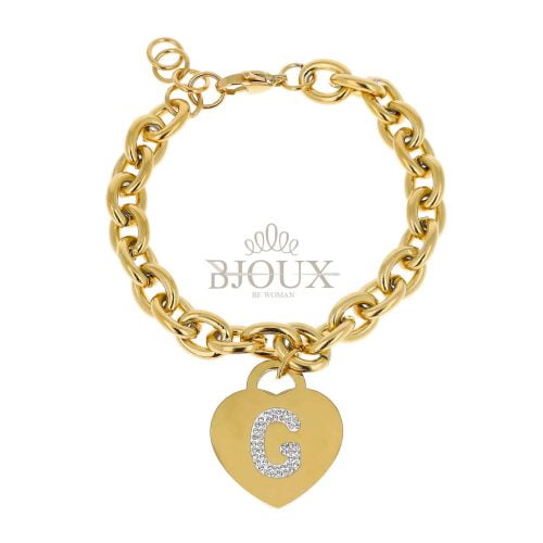 Bracciale da donna in acciaio a catena con chiusura regolabile con ciondolo centrale lettera alfabeto decorata da zirconi.