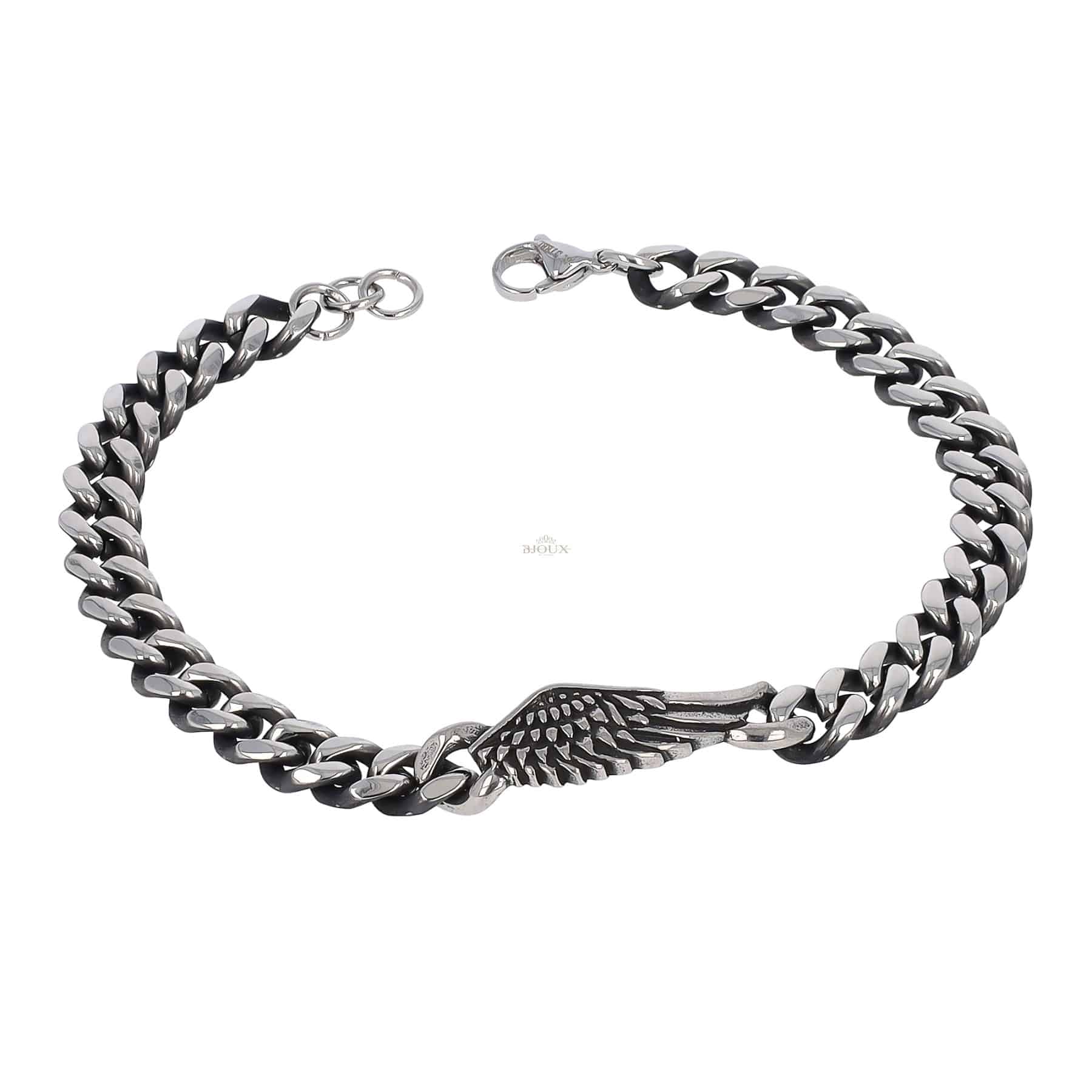 Bracciale di bigiotteria da uomo in acciaio inossidabile catena rodiata anticata con ala.