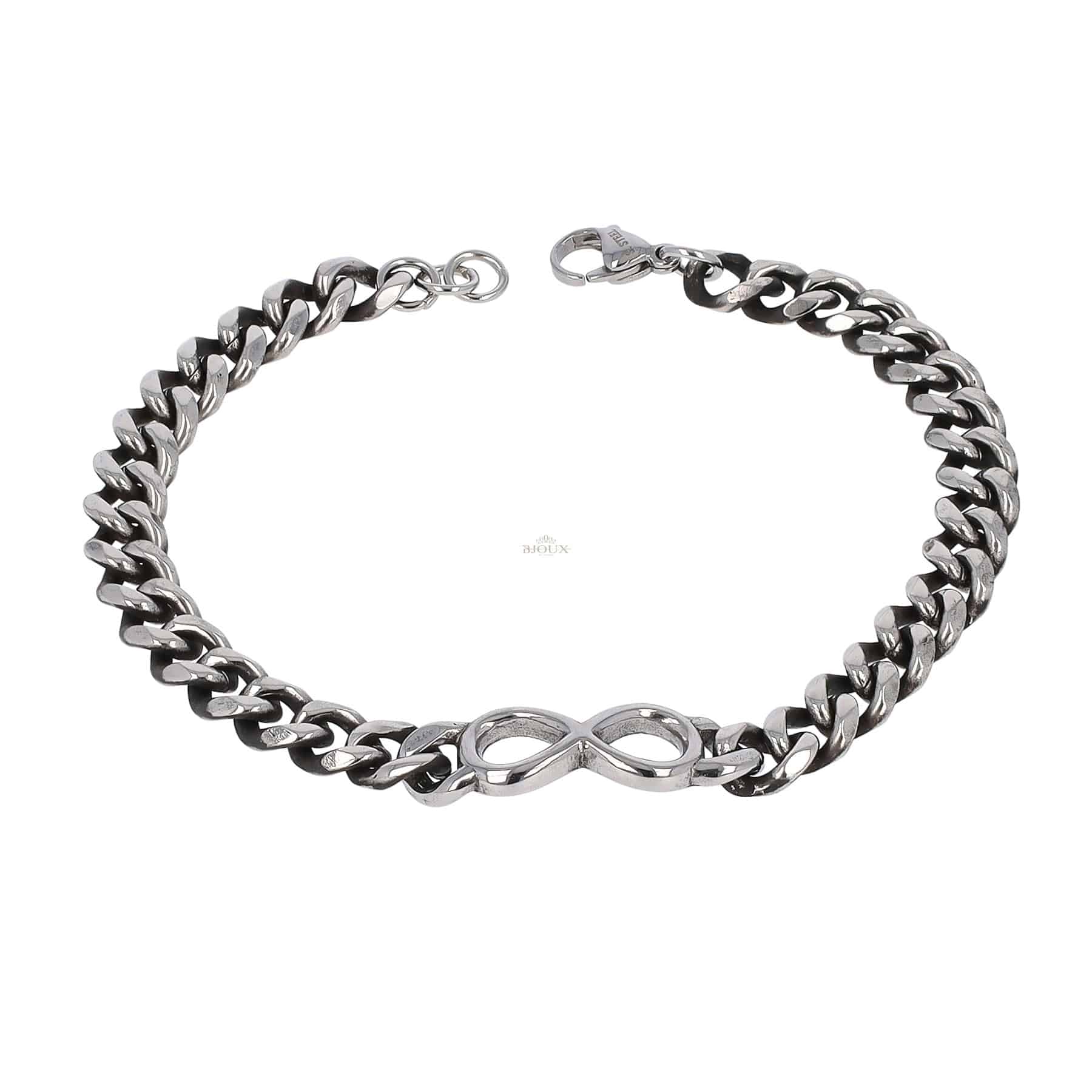 Bracciale di bigiotteria da uomo in acciaio inossidabile catena rodiata anticata con infinito.