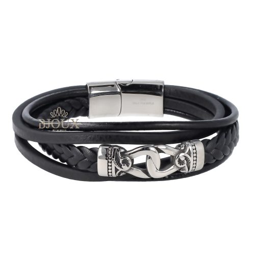 Bracciale di bigiotteria da uomo con cinturino multifilo in ecopelle con groumette in acciaio inossidabile. Con astuccio regalo 9×9