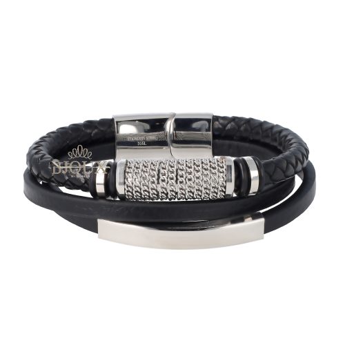 Bracciale di bigiotteria da uomo con cinturino multifilo in ecopelle con groumette in acciaio inossidabile. Con astuccio regalo 9×9