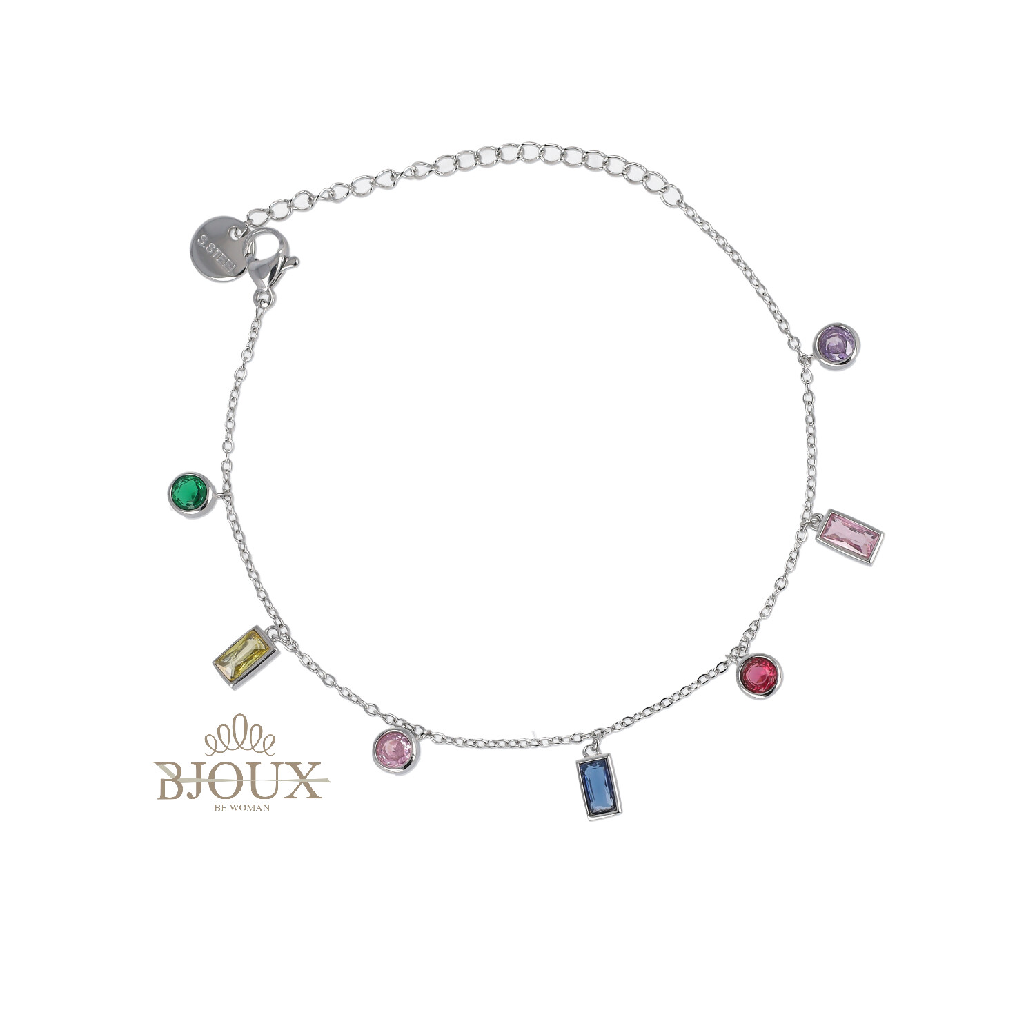 Bracciale in acciaio impreziosito da punti luce e cristalli geometrici. Un modello luminoso che dona eleganza immediata al polso.