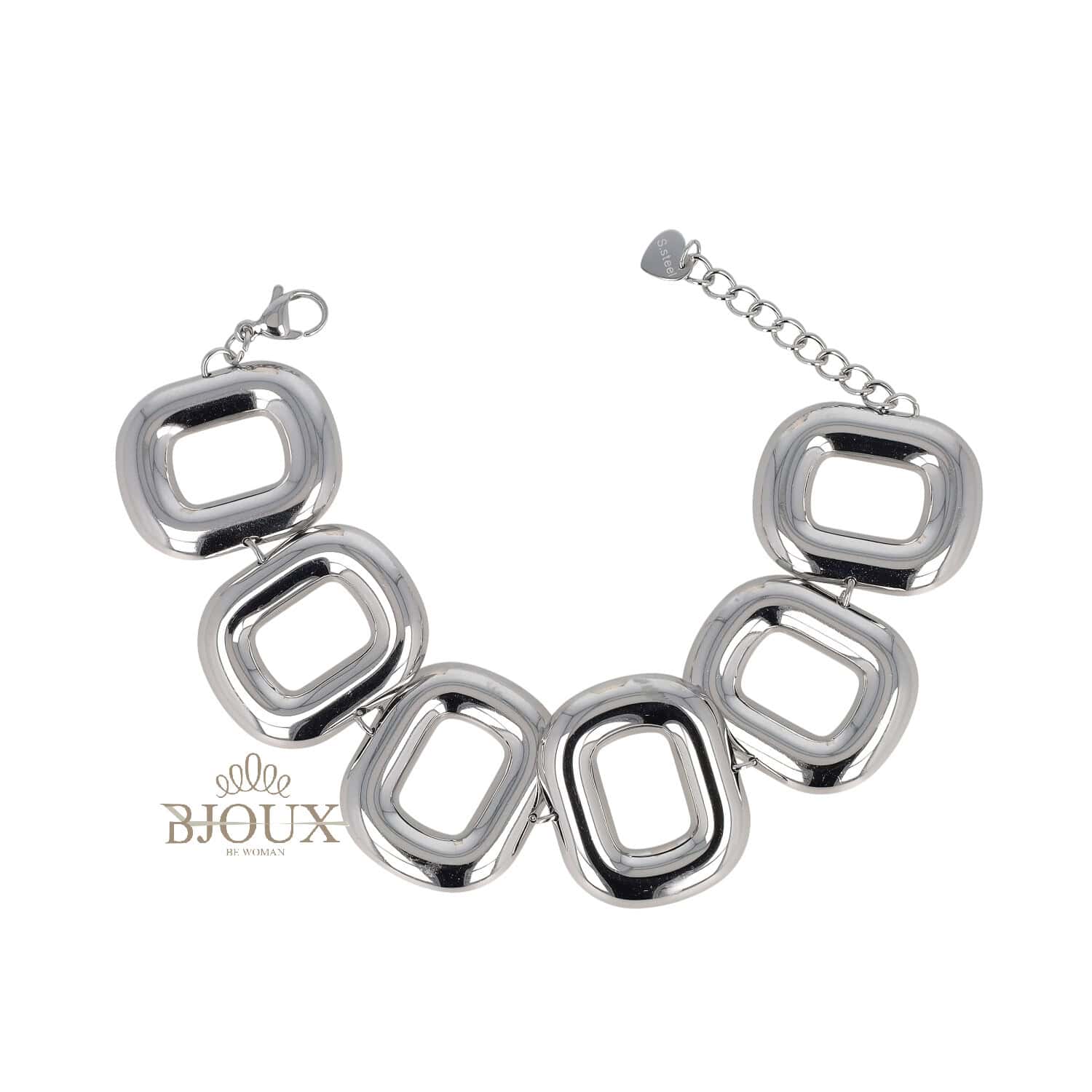 Bracciale a grandi maglie quadrate vuote da 2,8 CM, dal design geometrico e moderno.Disponibile in oro e rodio.