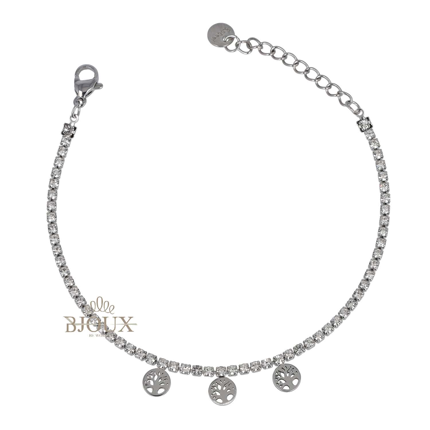 Bracciale in acciaio inossidabile modello tennis con strass e ciondoli albero della vita
