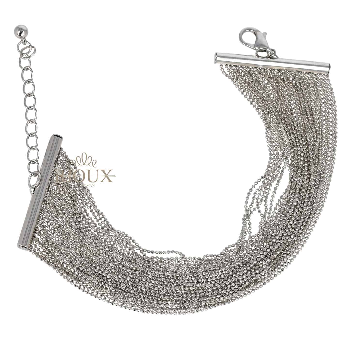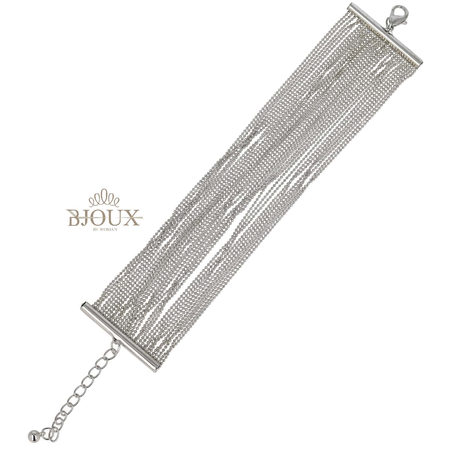 Bracciale di bigiotteria. Bracciale multifili a gradazione in ottone con micro pallini .ย 5 cm di estensione