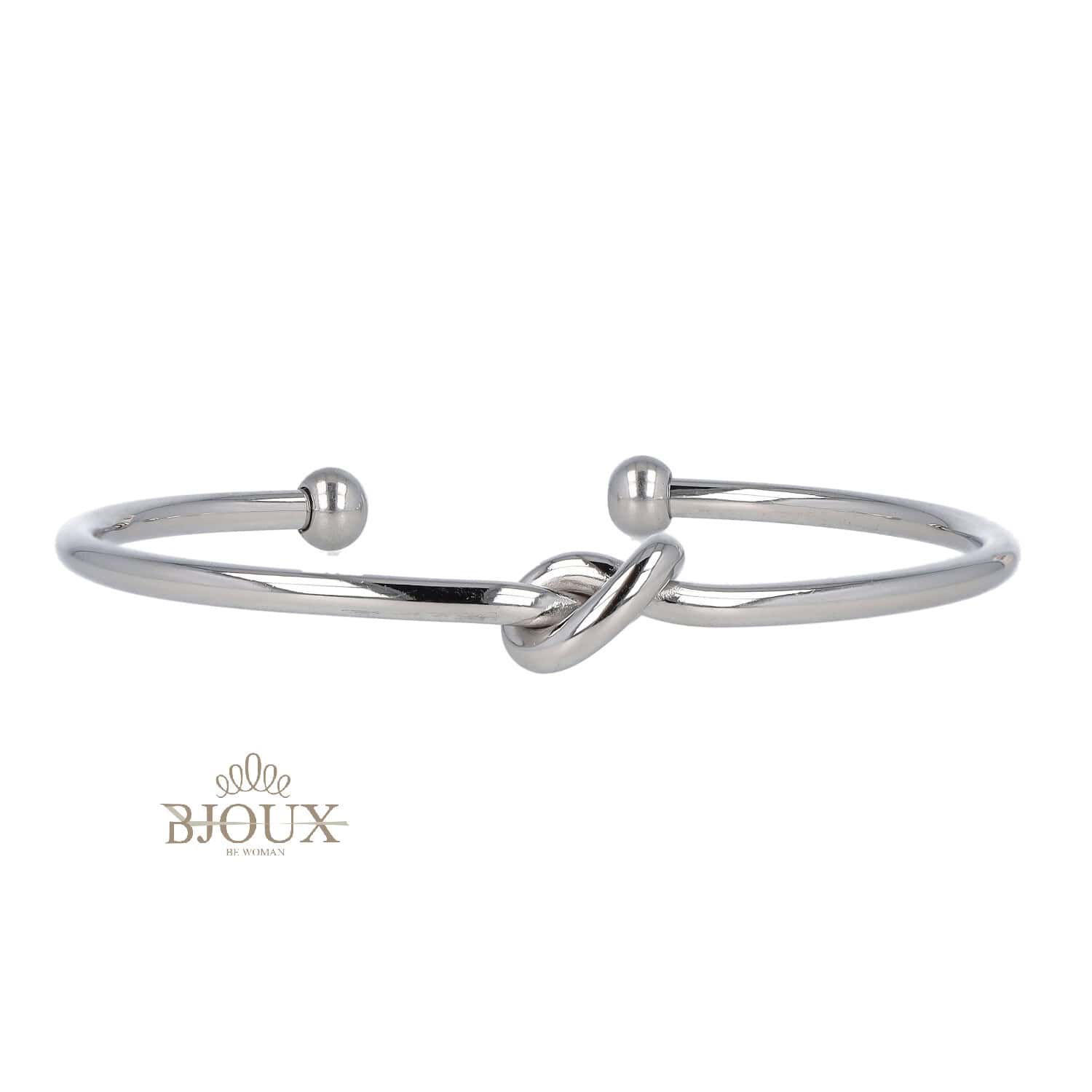 Bracciale bigiotteria in acciaio inossidabile con nodo centrale, disponibile in tre varianti di colore.