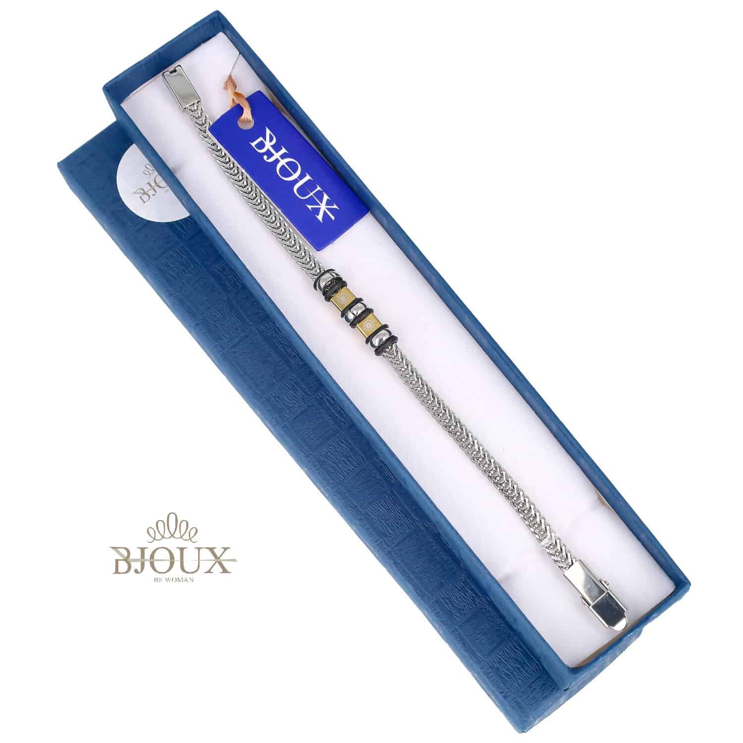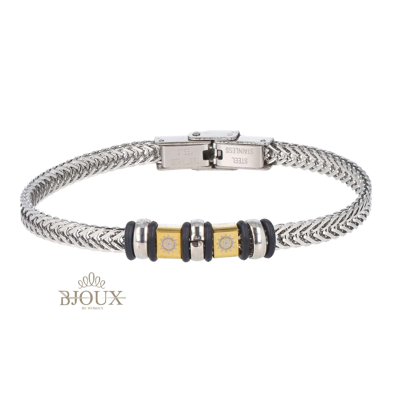 Bracciale da uomo in acciaio inossidabile. Misura 20 cm. Catenina con bussolotti 5mm larghezza co timone. Con Astuccio regalo 21×5 cm blu