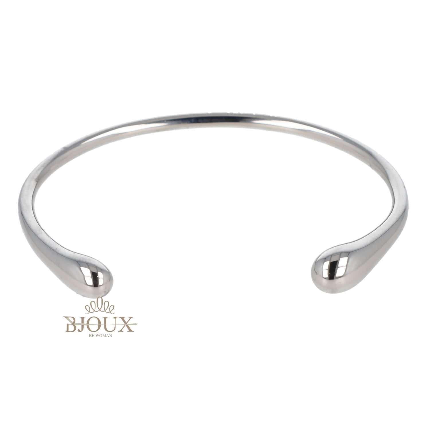 Bracciale aperto in acciaio inox anallergico, con estremità tondeggianti e linee essenziali. Perfetto come accessorio unisex da abbinare a più look. Disponibile oro e argento.