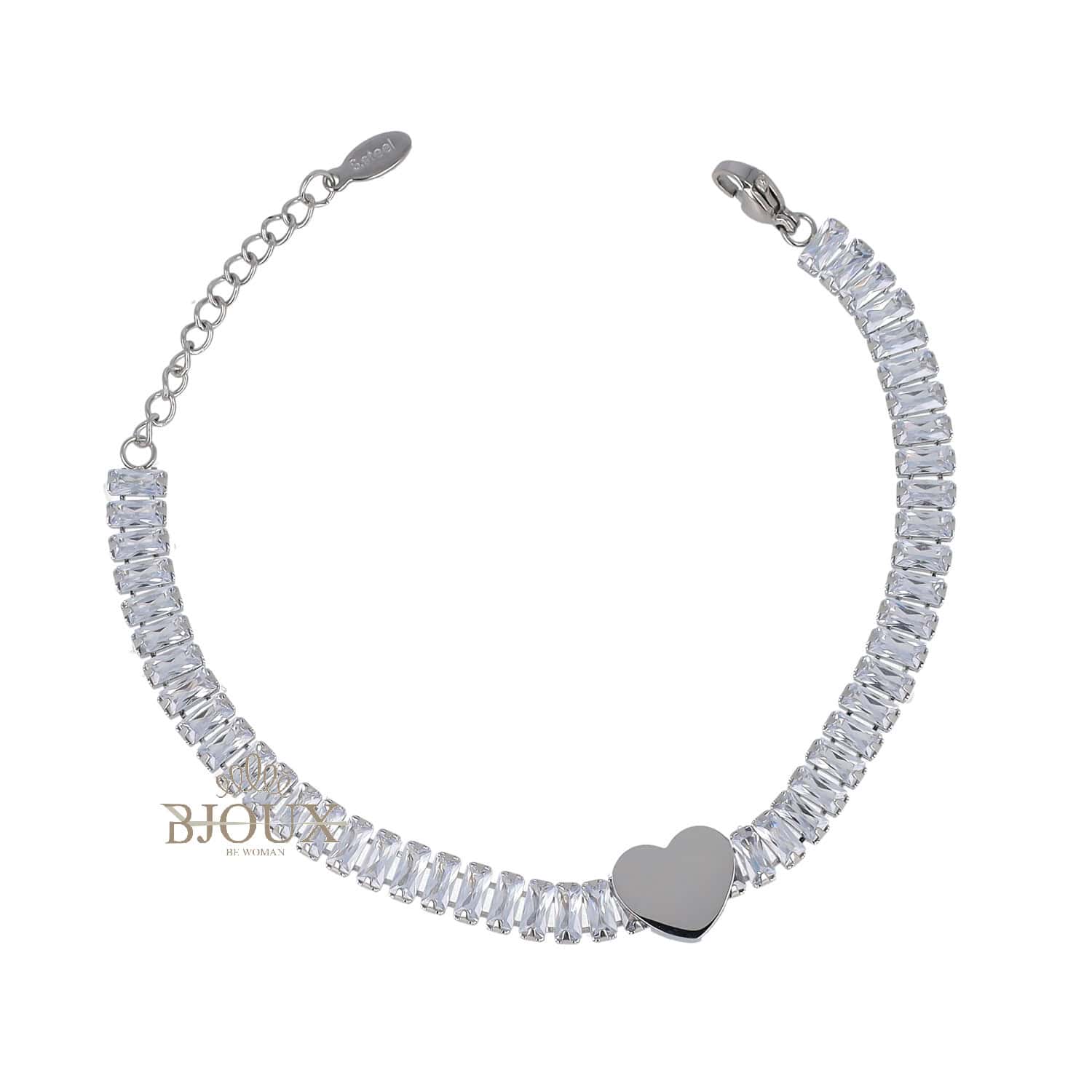 Bracciale da donna in acciaio inossidabile con baguette krystal e cuore centrale.