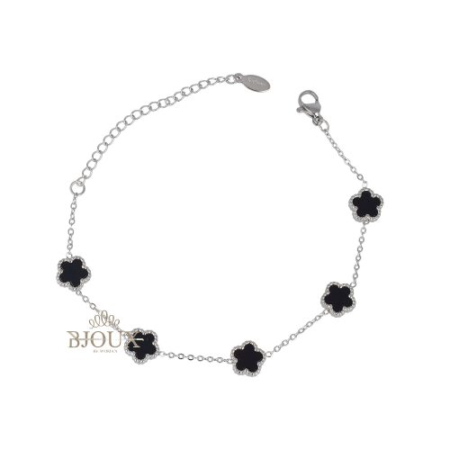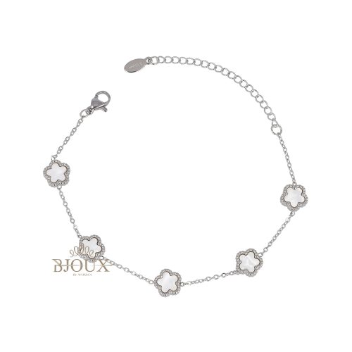 Bracciale catenina in acciaio inossidabile, 17+5 cm estensione. Bracciale con 5 fiorellini da 0,90 cm con interno colorato