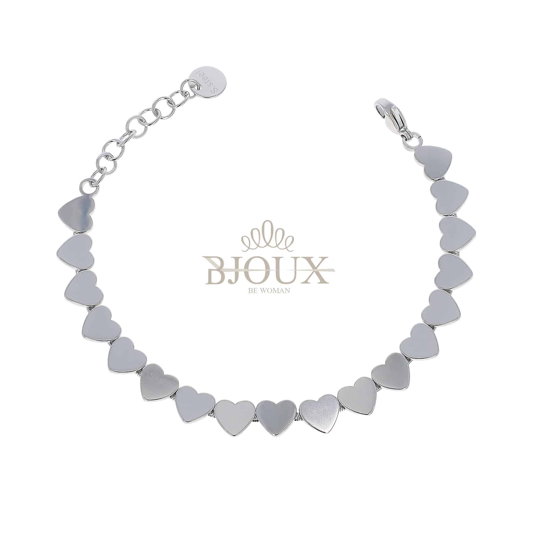 Bracciale bijoux in acciaio inossidabile dipinto in oro o rodio con cuoricini.