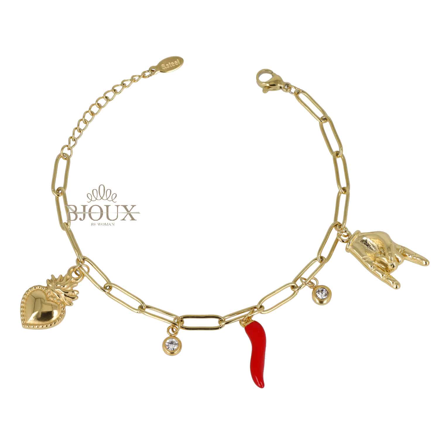 Bracciale bigiotteria da donna in acciaio inossidabile a catena Sciò Sciò con punti luce e corno