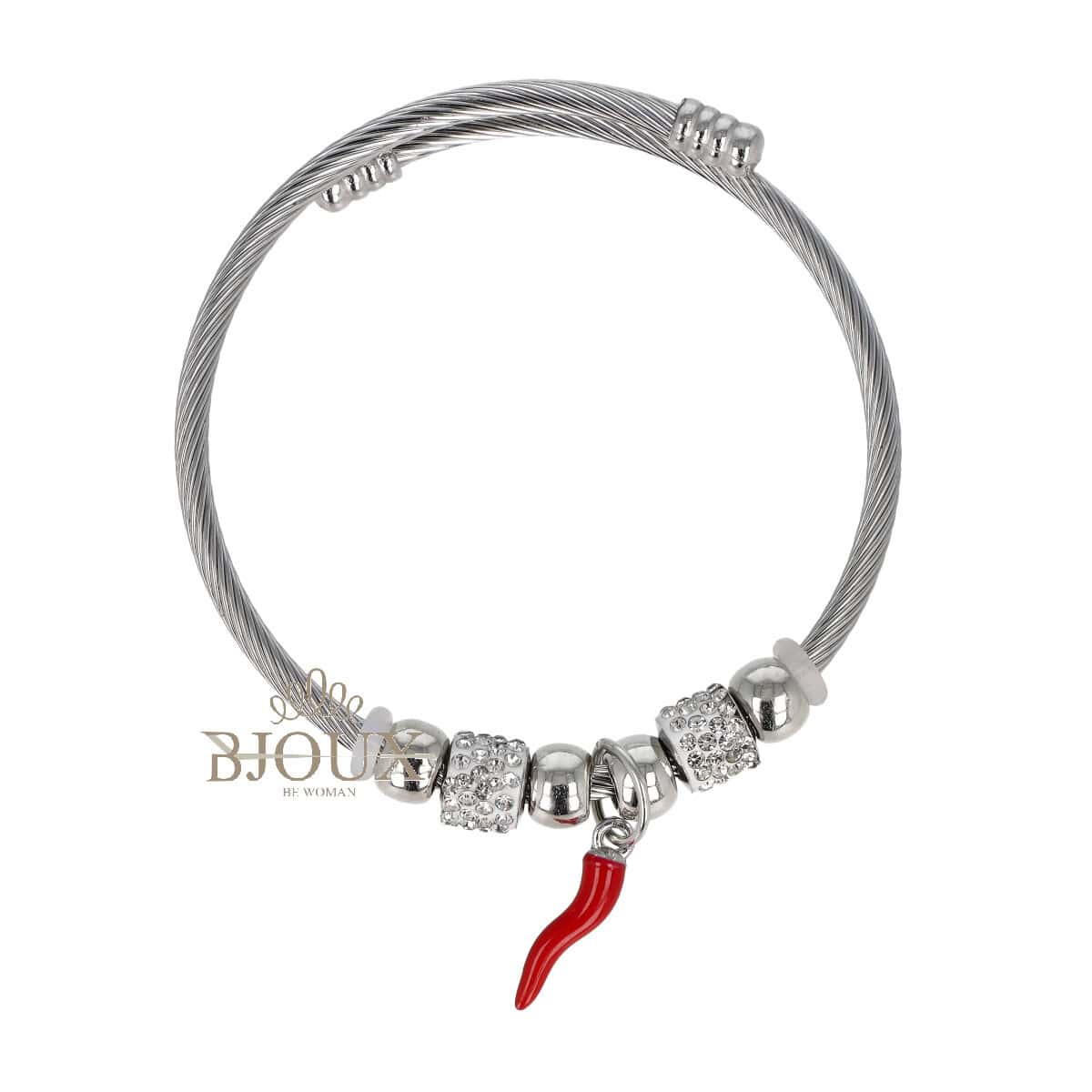 Bracciale in acciaio inossidabile a spirale, beads con strass e pendente a forma di corno