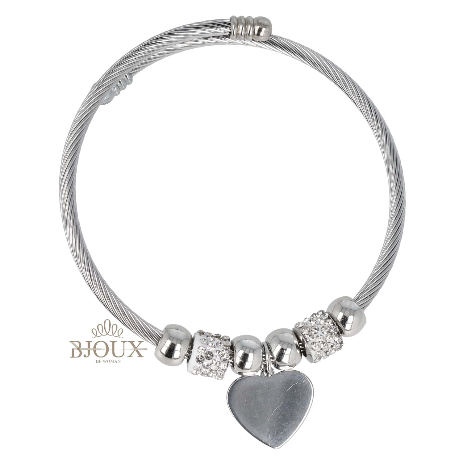 Bracciale in acciaio inossidabile a spirale, beads con strass e pendente a forma di cuore