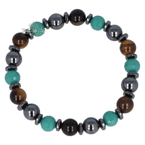 Bracciale talismano con pietre in cristalli verdi elastico.