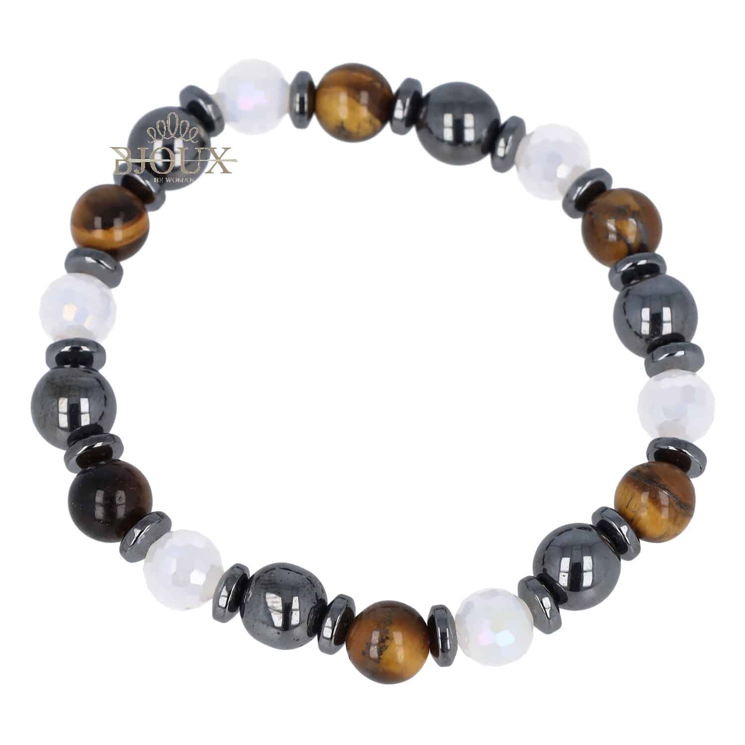 Bracciale talismano con pietre in cristalli bianchi elastico.