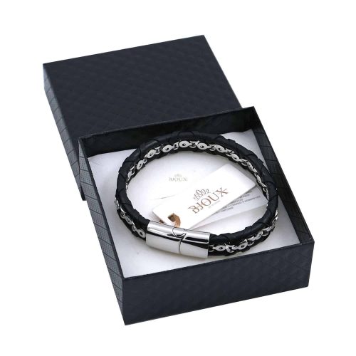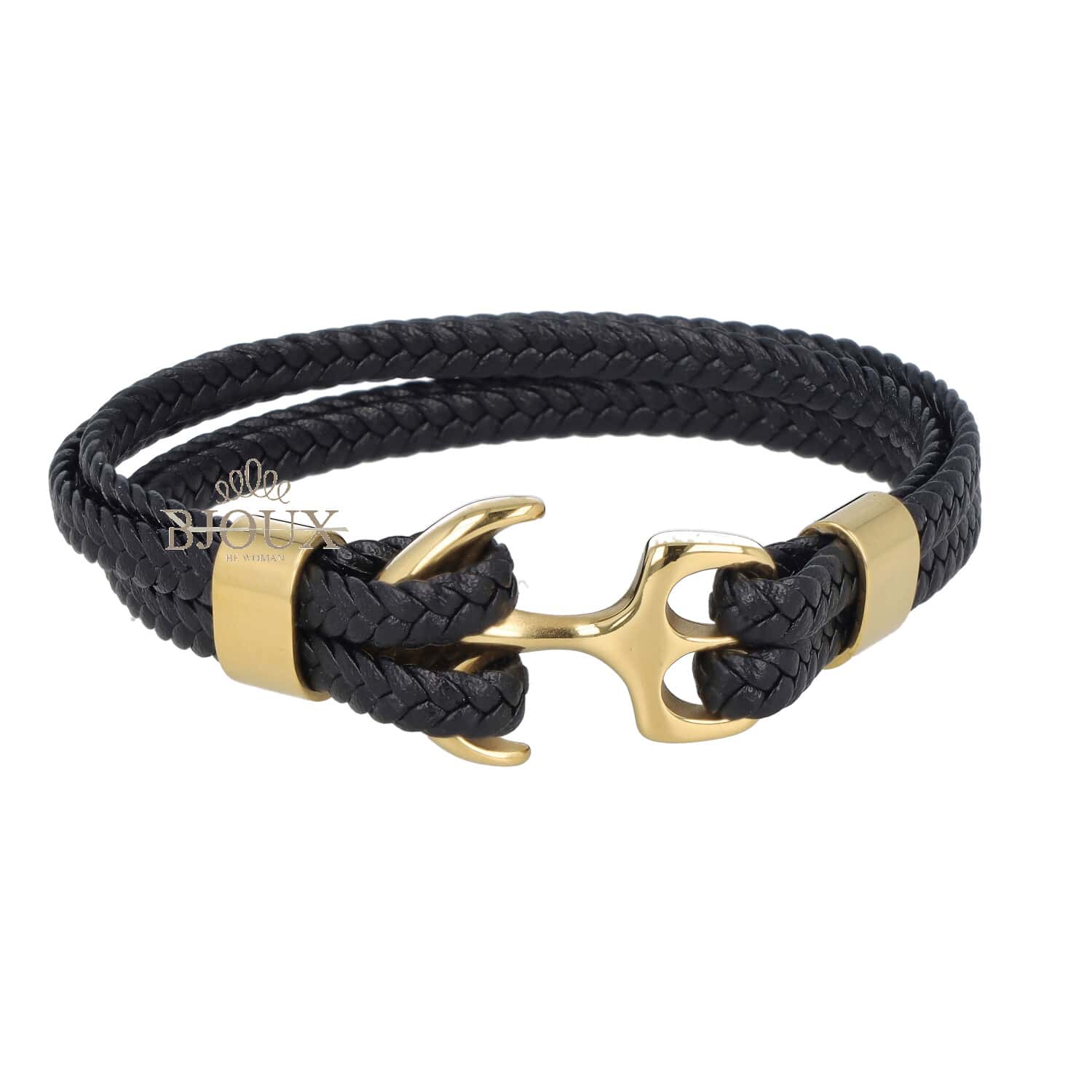 Bracciale di bigiotteria “Steel Leather” da uomo. Bracciale in pelle intrecciata a 4 fili con ancora gold in acciaio inossidabile.