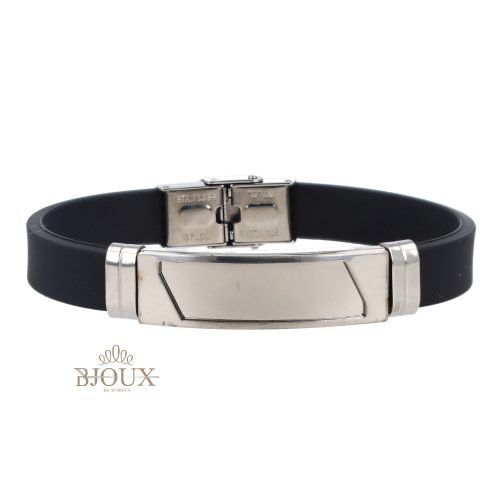 Bracciale di bigiotteria “Acciaio Inossidabile” da uomo. Bracciale in acciaio e cuoio colore nero con targa