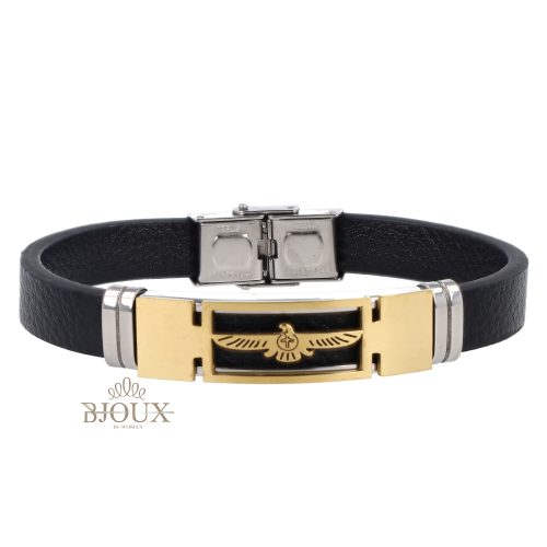 Bracciale di bigiotteria “Acciaio Inossidabile” da uomo. Bracciale in acciaio e cuoio colore nero con targa