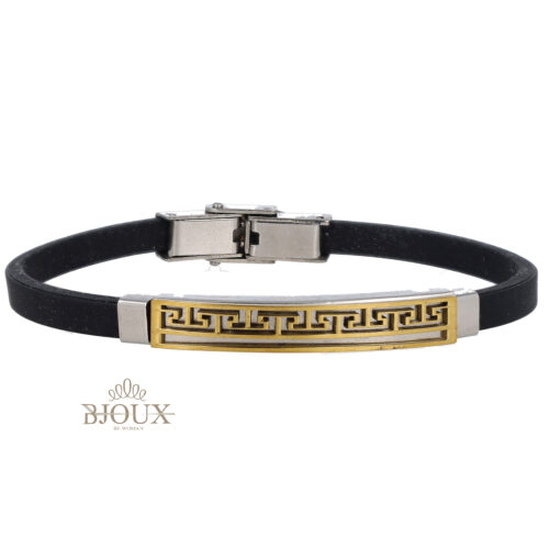 Bracciale di bigiotteria “Acciaio Inossidabile” da uomo. Bracciale in acciaio e cuoio colore nero con targa
