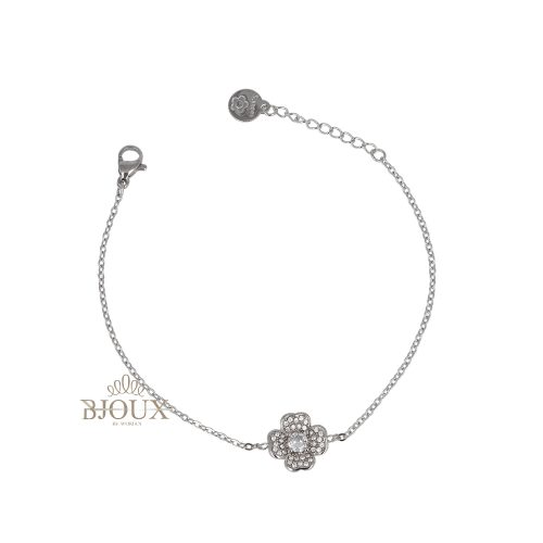 Bracciale catenina in acciaio inossidabile, 17+5 cm estensione. Bracciale con centrale fiorellino in rilievo decorato da strass 1 cm