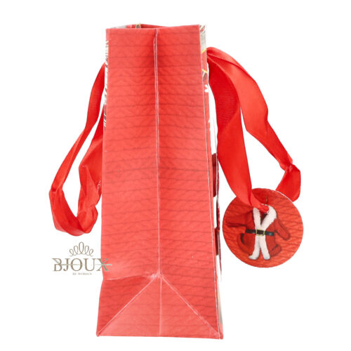 Busta regalo in carta natalizia con disegno in 3d e bigliettino tondo , laccetto in raso. Misure 14 x 7 x 17 cm. Confezione da 3 pezzi. Fantasie assortite