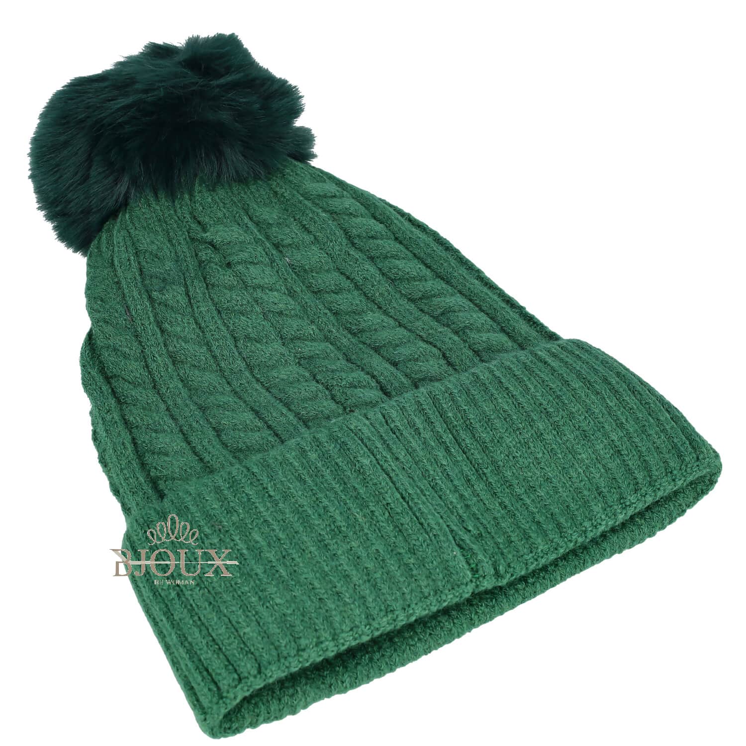 Cappello da donnaย modello cuffia intreccio con pon pon. Taglia Unica. Composizione 40% viscosa, 10% cashmere 50% lana . Vari colori disponibili