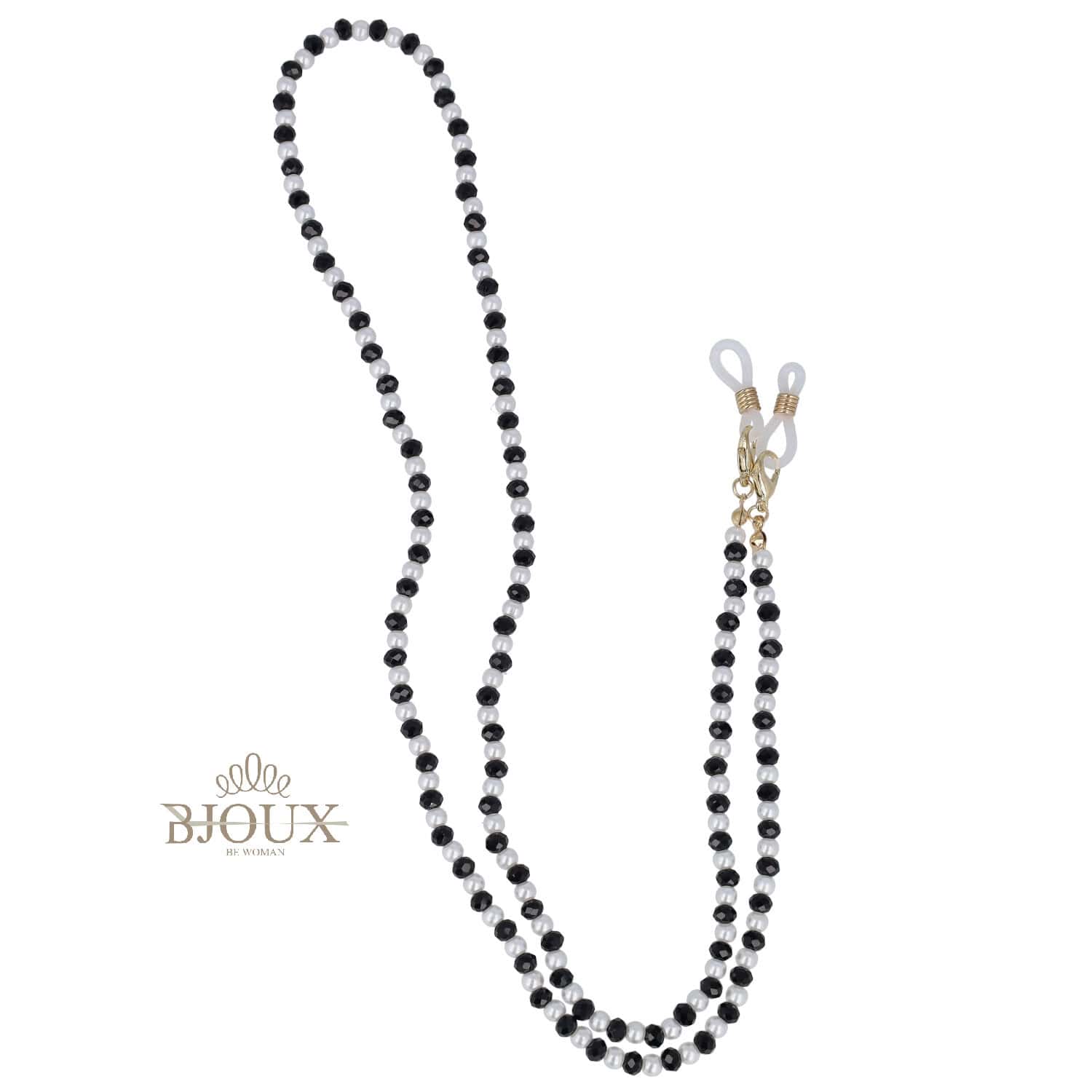 Laccetto per occhiali con microsfere in vetro colorati e perle , con elementi in oro.