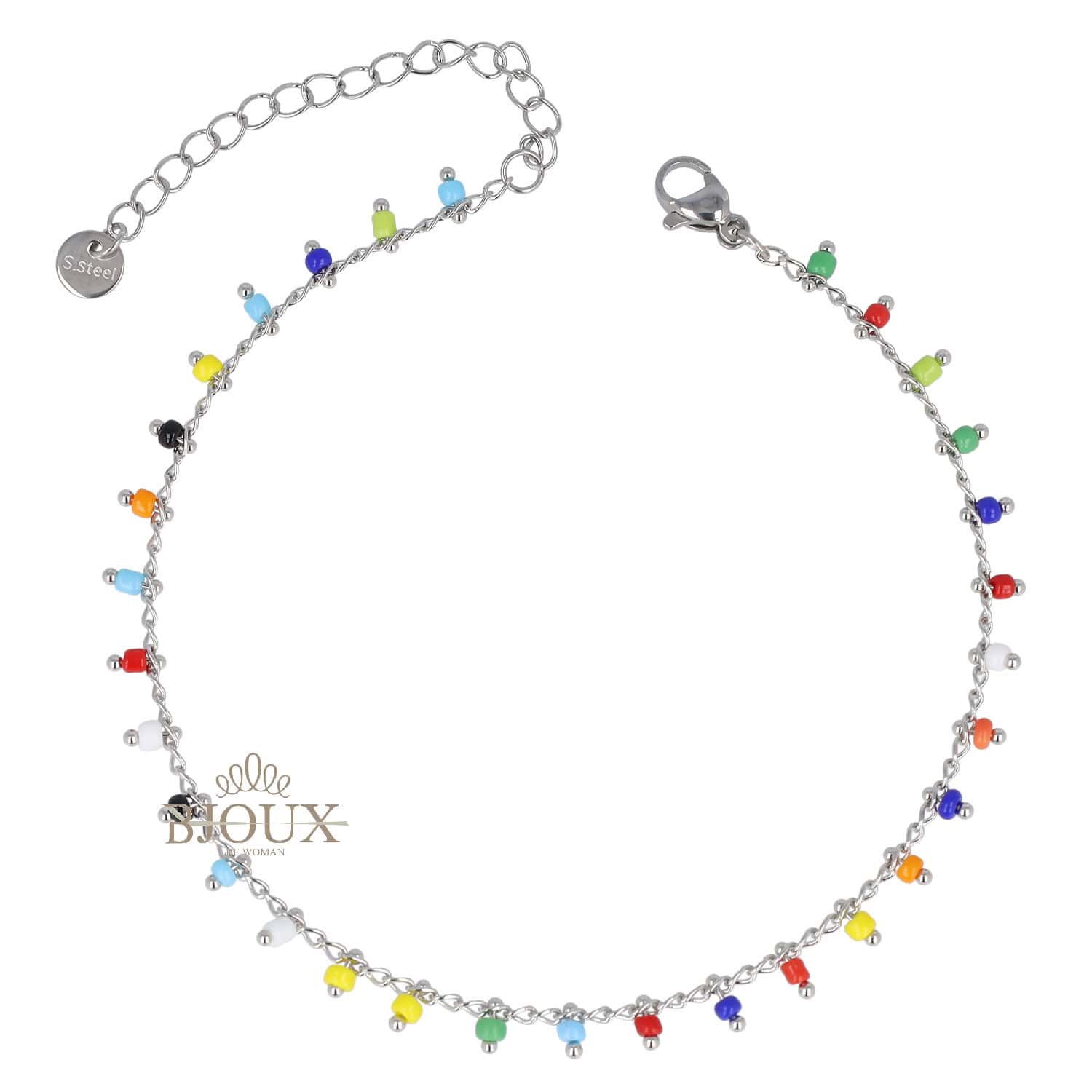 Cavigliera con chiusura in acciaio inossidabile catenina con micro corallini colorati
