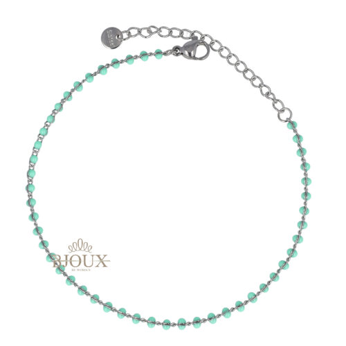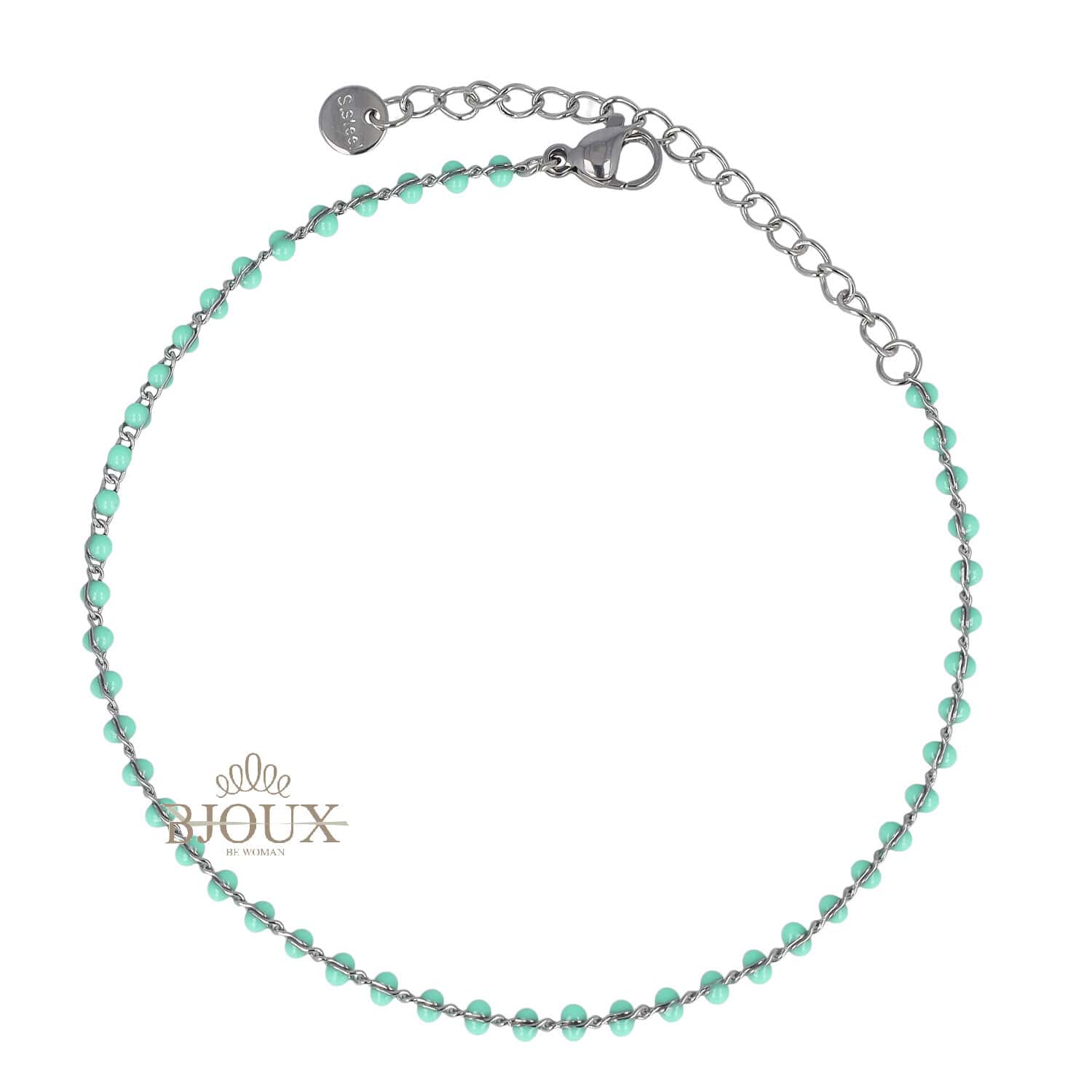 Cavigliera con chiusura in acciaio inossidabile catenina con micro pallini colorati.