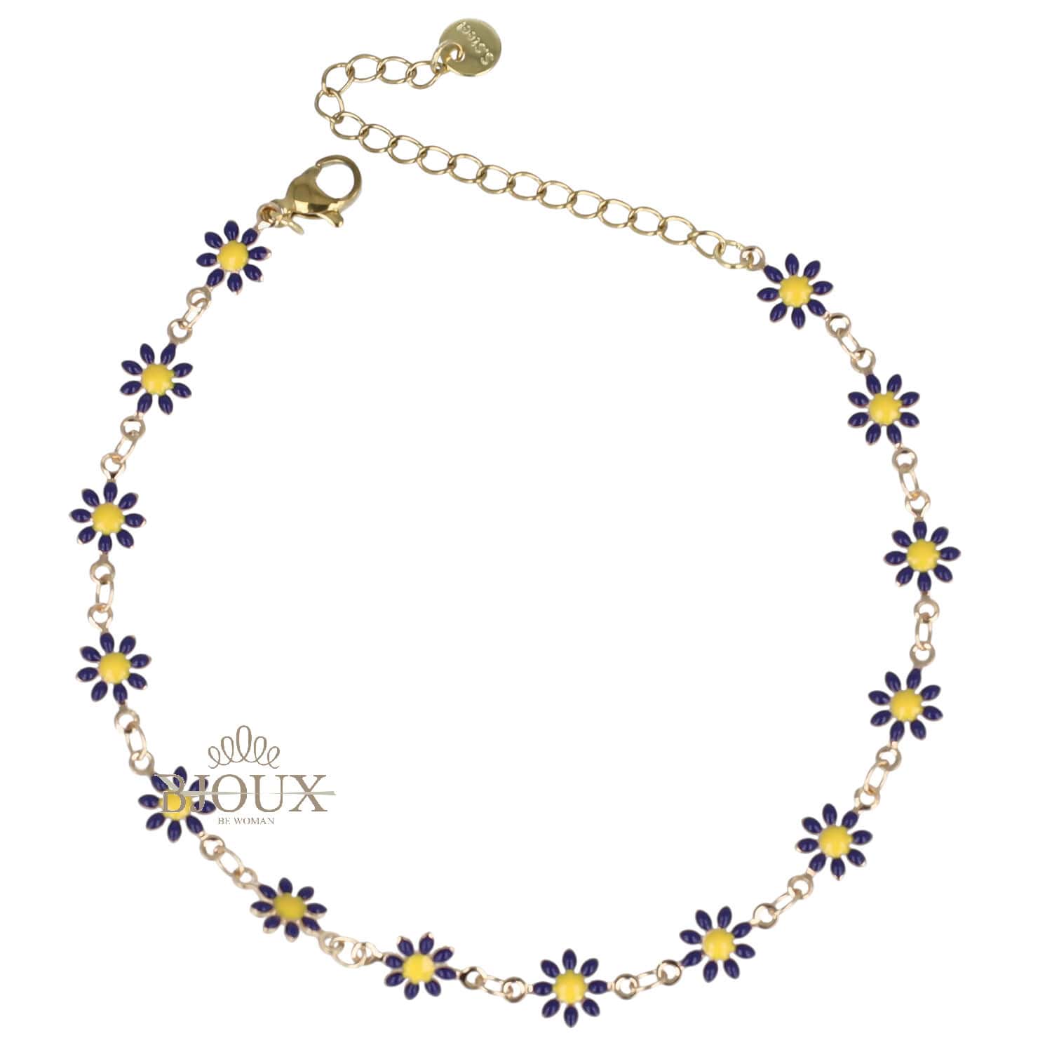 Cavigliera on chiusura in acciaio dipinto con margherite smaltate e colorate