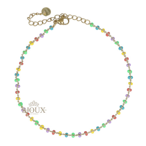 Cavigliera con chiusura in acciaio inossidabile catenina con micro pallini colorati.