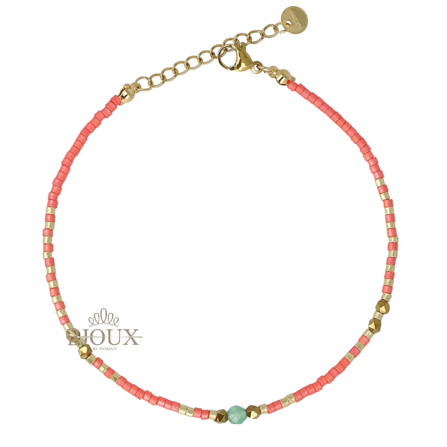 Cavigliera con chiusura in acciaio inossidabile con micro pallini colorati. Disponibile in vari colori.