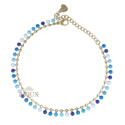 Cavigliera di bigiotteria in acciaio inossidabile dipinto color oro con microsfere di smalto colorato e chiusura regolabile