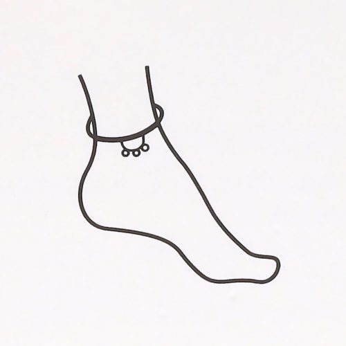 Cavigliera di bigiotteria in acciaio inossidabile dipinto color oro con microsfere di smalto colorato e chiusura regolabile