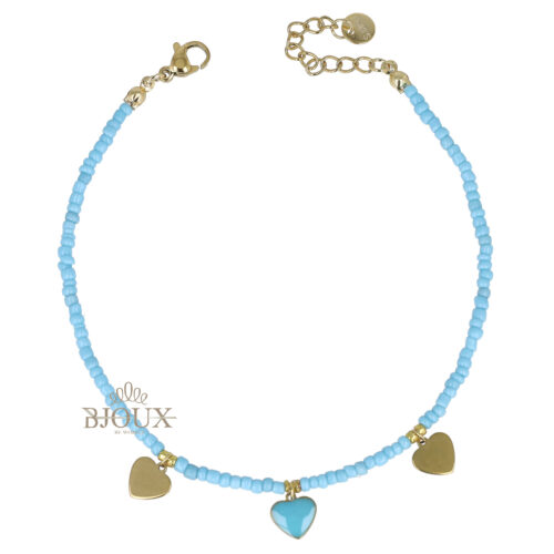 Cavigliera con chiusura in acciaio inossidabile con micro corallini colorati e tre cuoricini