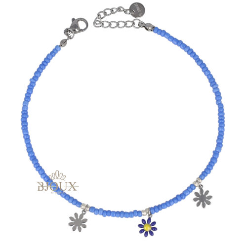 Cavigliera con chiusura in acciaio inossidabile con micro corallini colorati e tre margherite