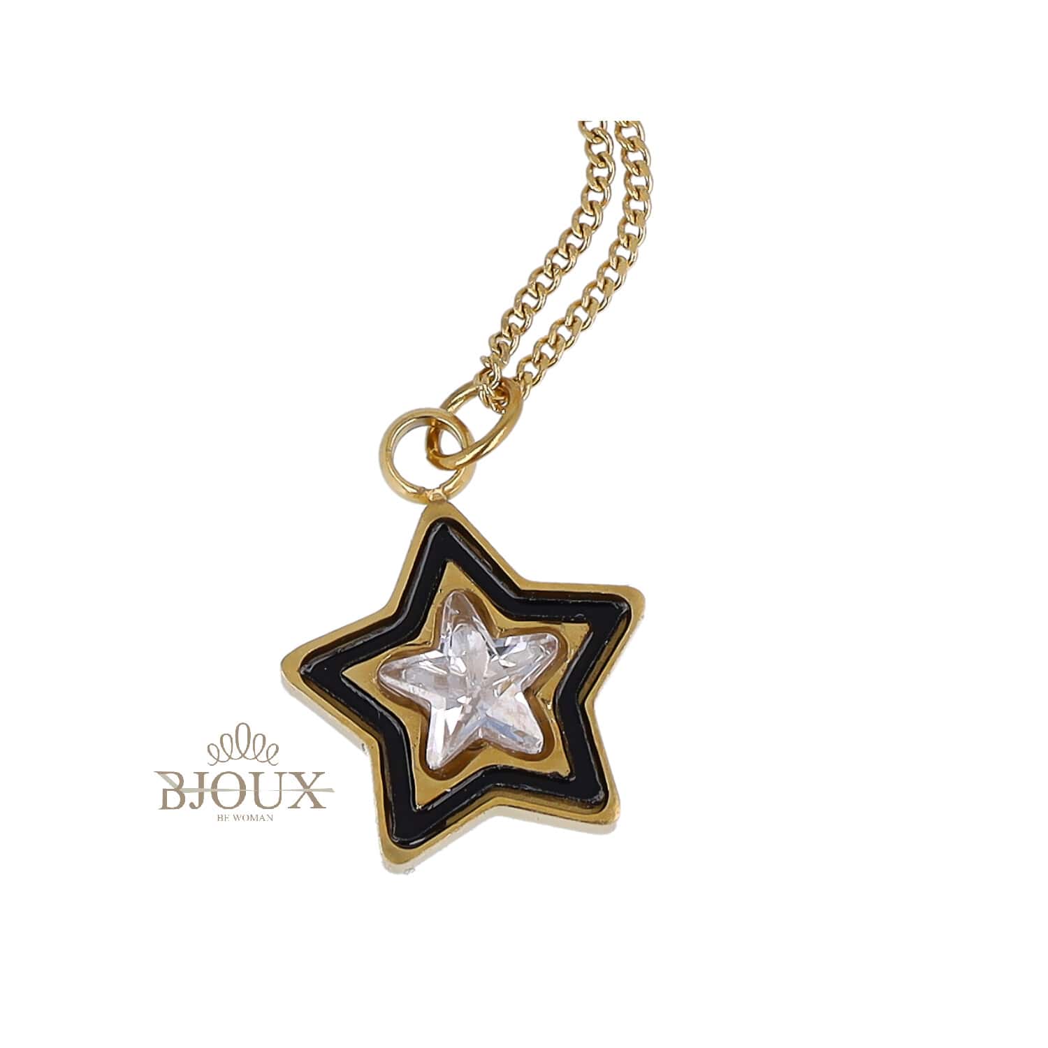 Collana di bigiotteria da donna in acciaio inossidabile a pallino con pendente stella con castone centrale