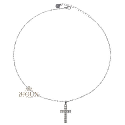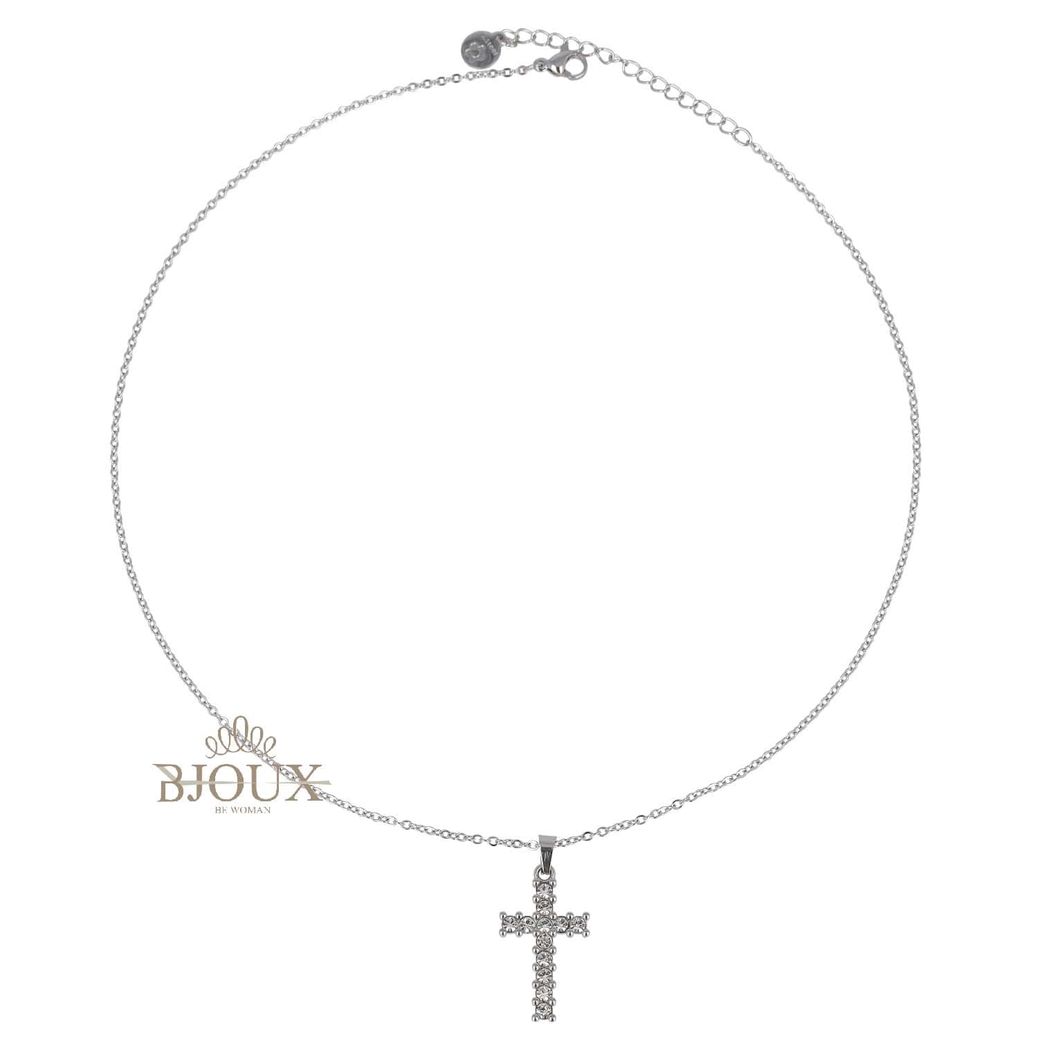Collana catenina in acciaio inox dipinto, 40+5 cm estensione. Ciondolo crocetta di brillantini 2,50 x 1,5 cm